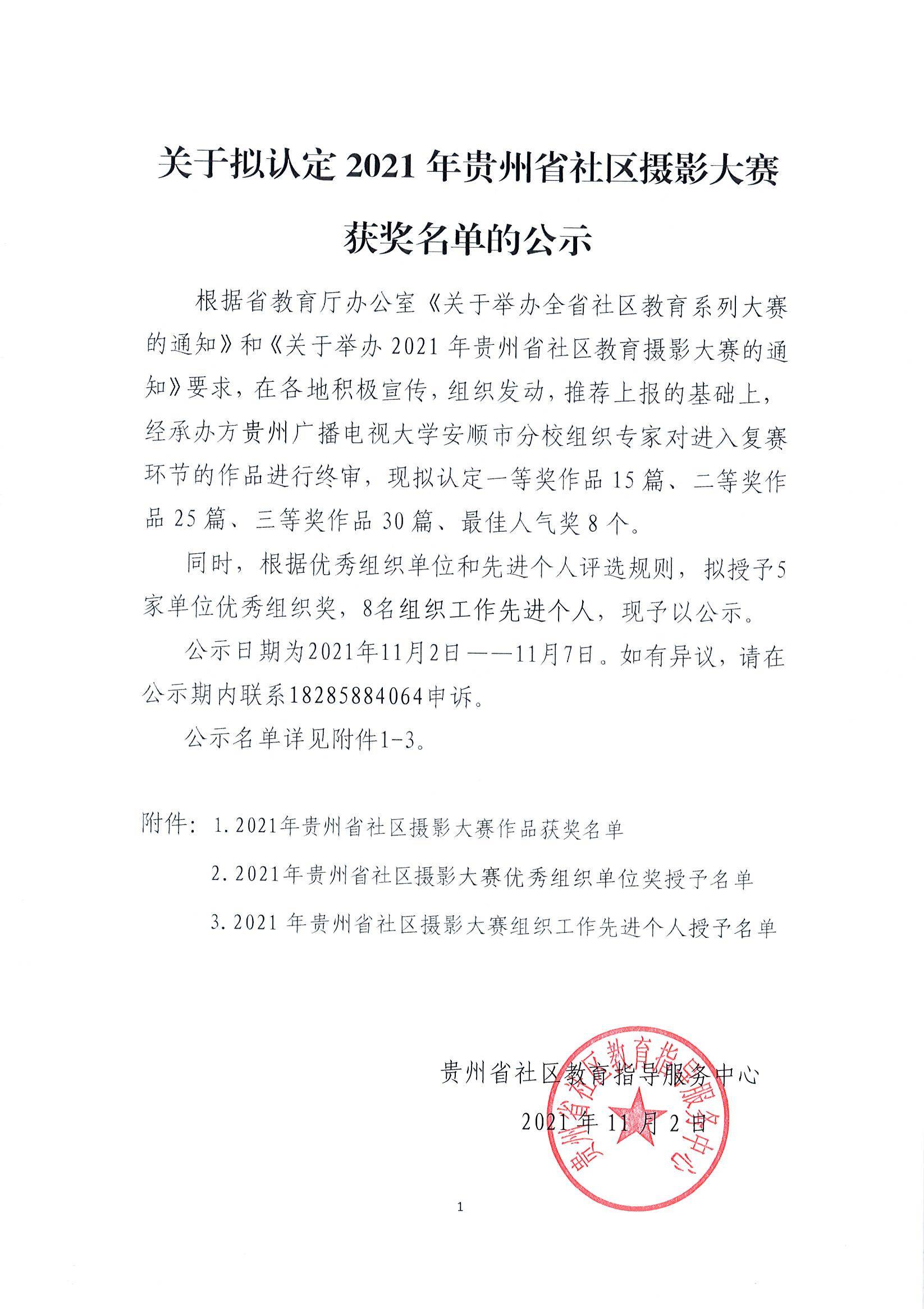 关于拟认定2021年贵州省社区摄影大赛获奖名单的公示